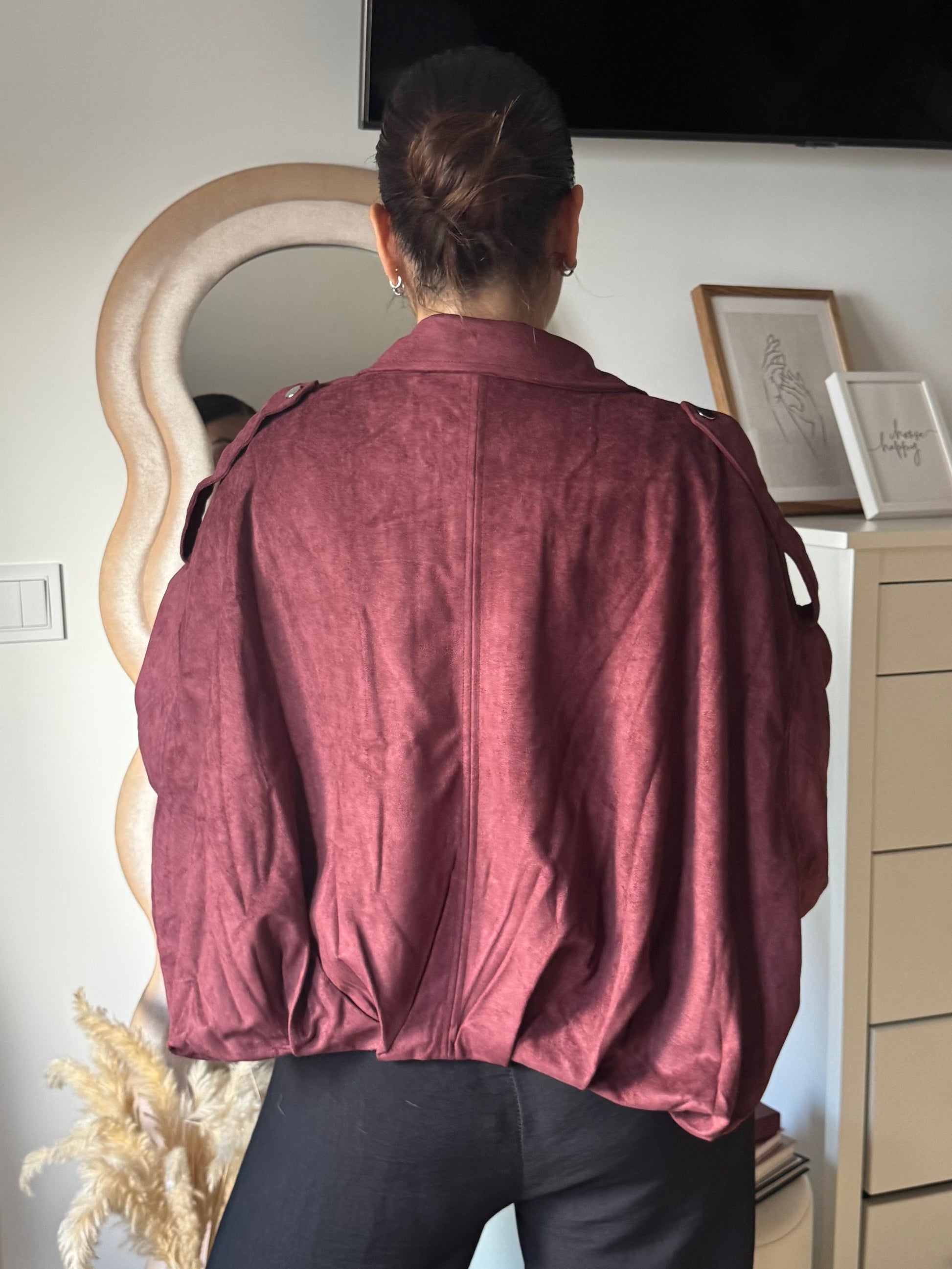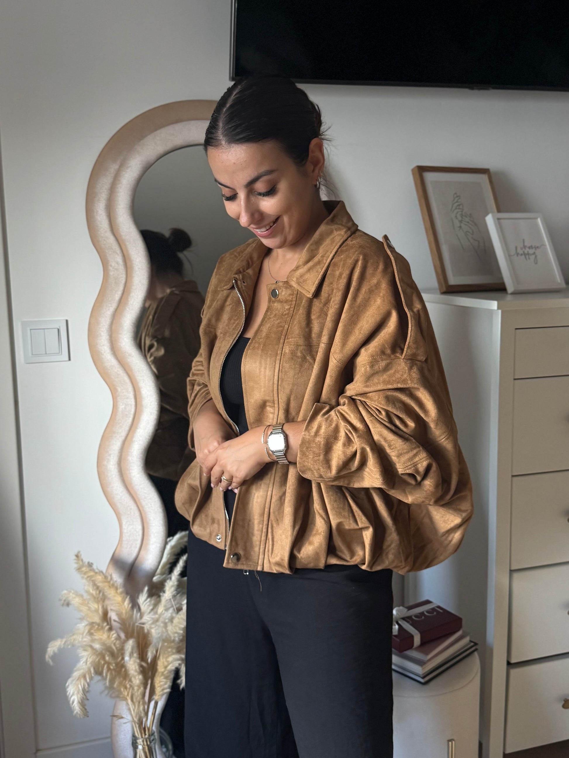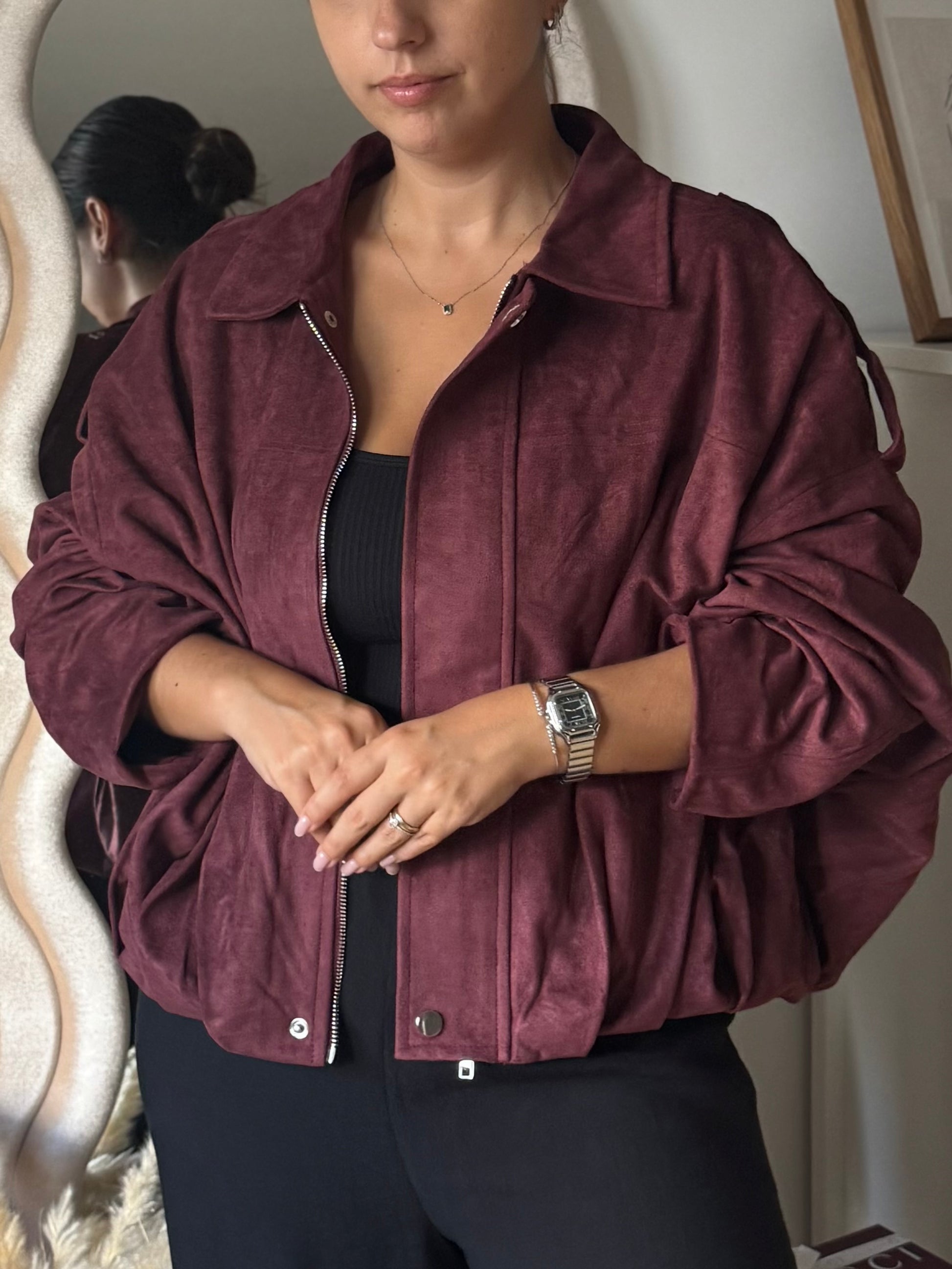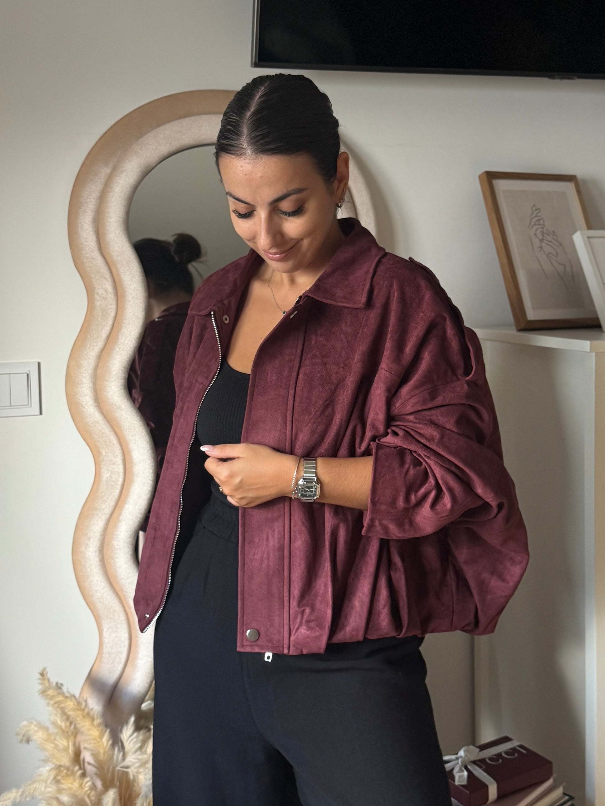 O casaco mais desejado da estação chegou nas três cores tendência: bordeaux, camel e castanho. Com corte oversized e mangas volumosas, este blusão em camurça é a combinação perfeita entre estilo, conforto e atitude.