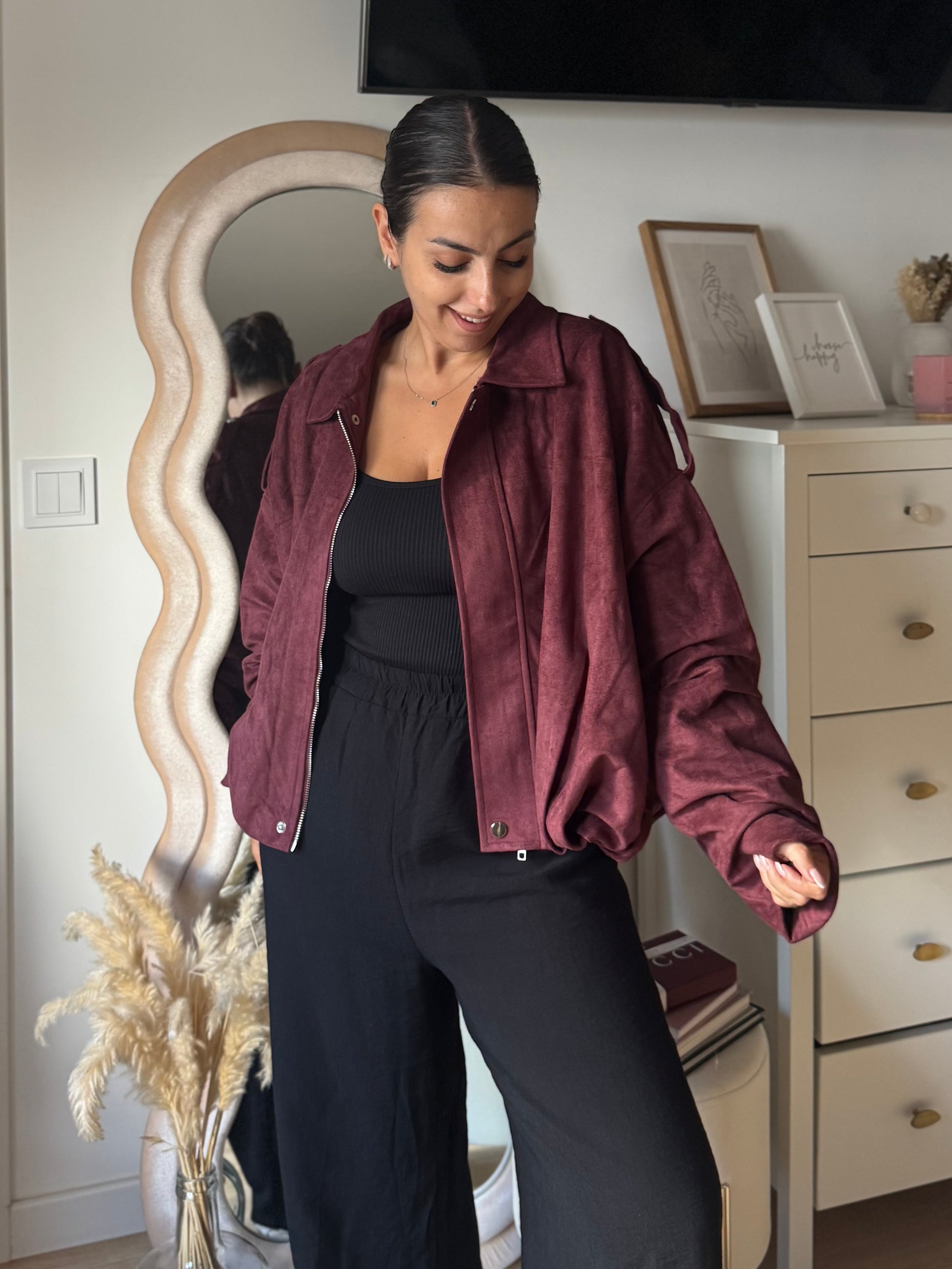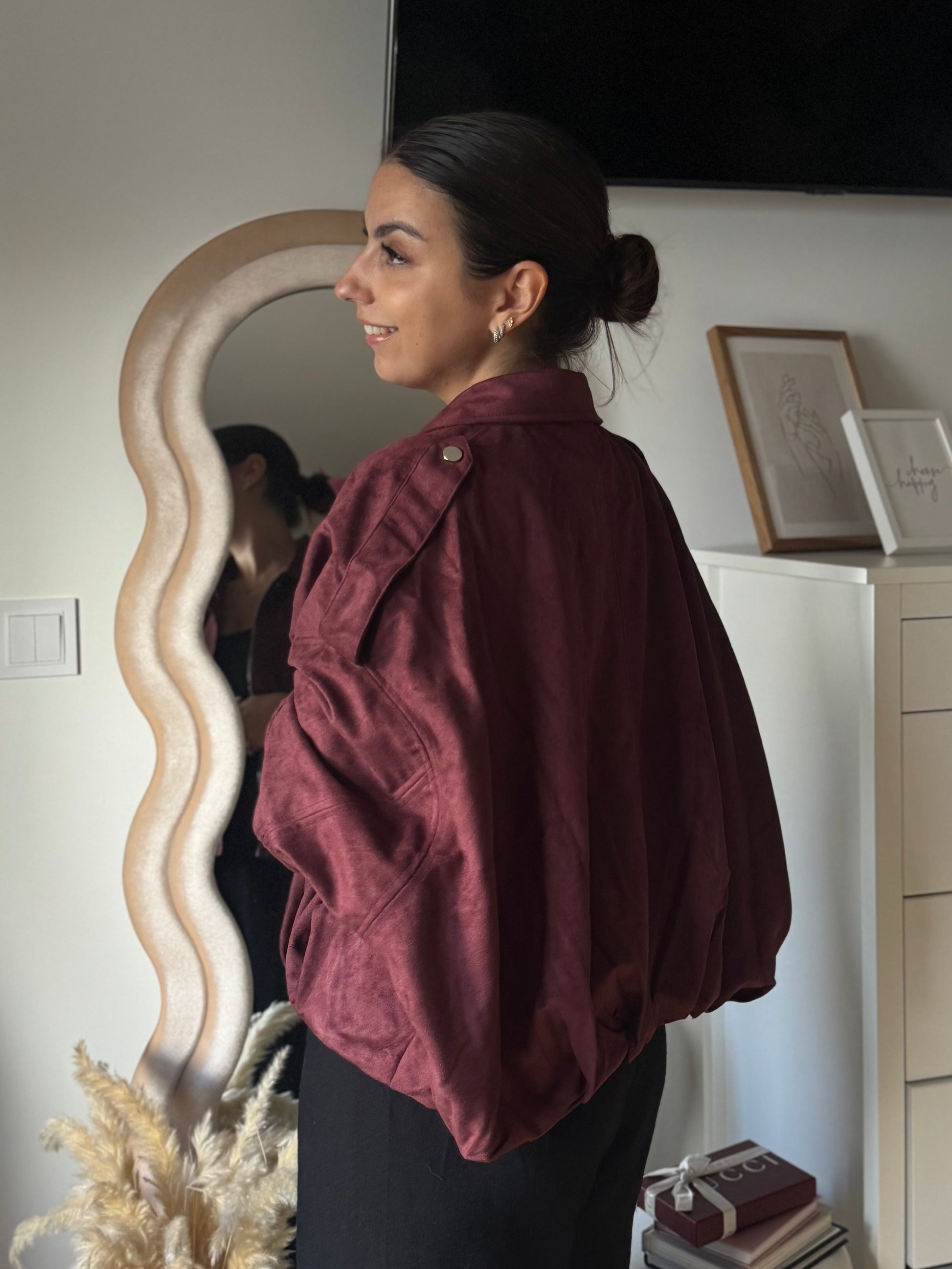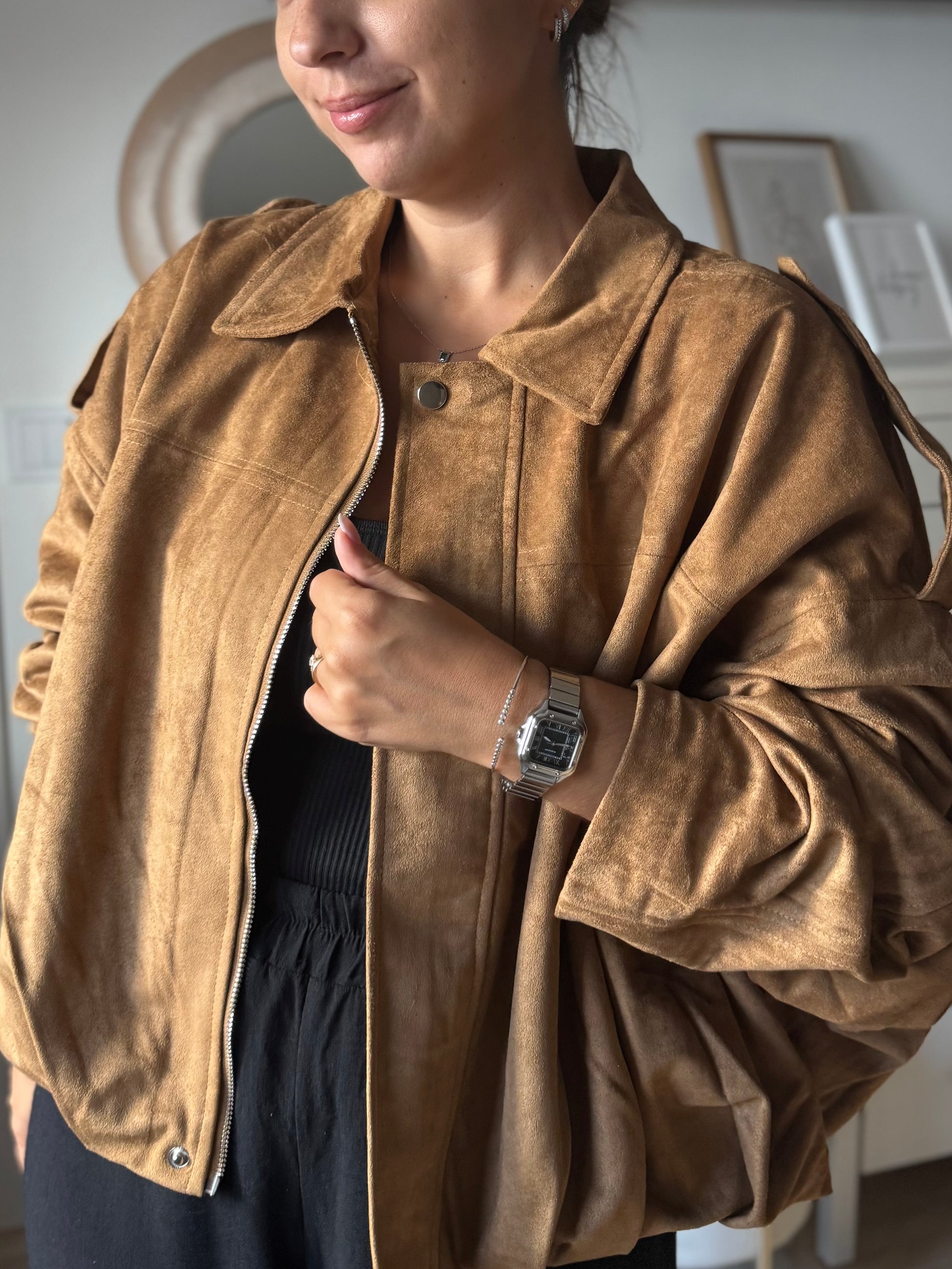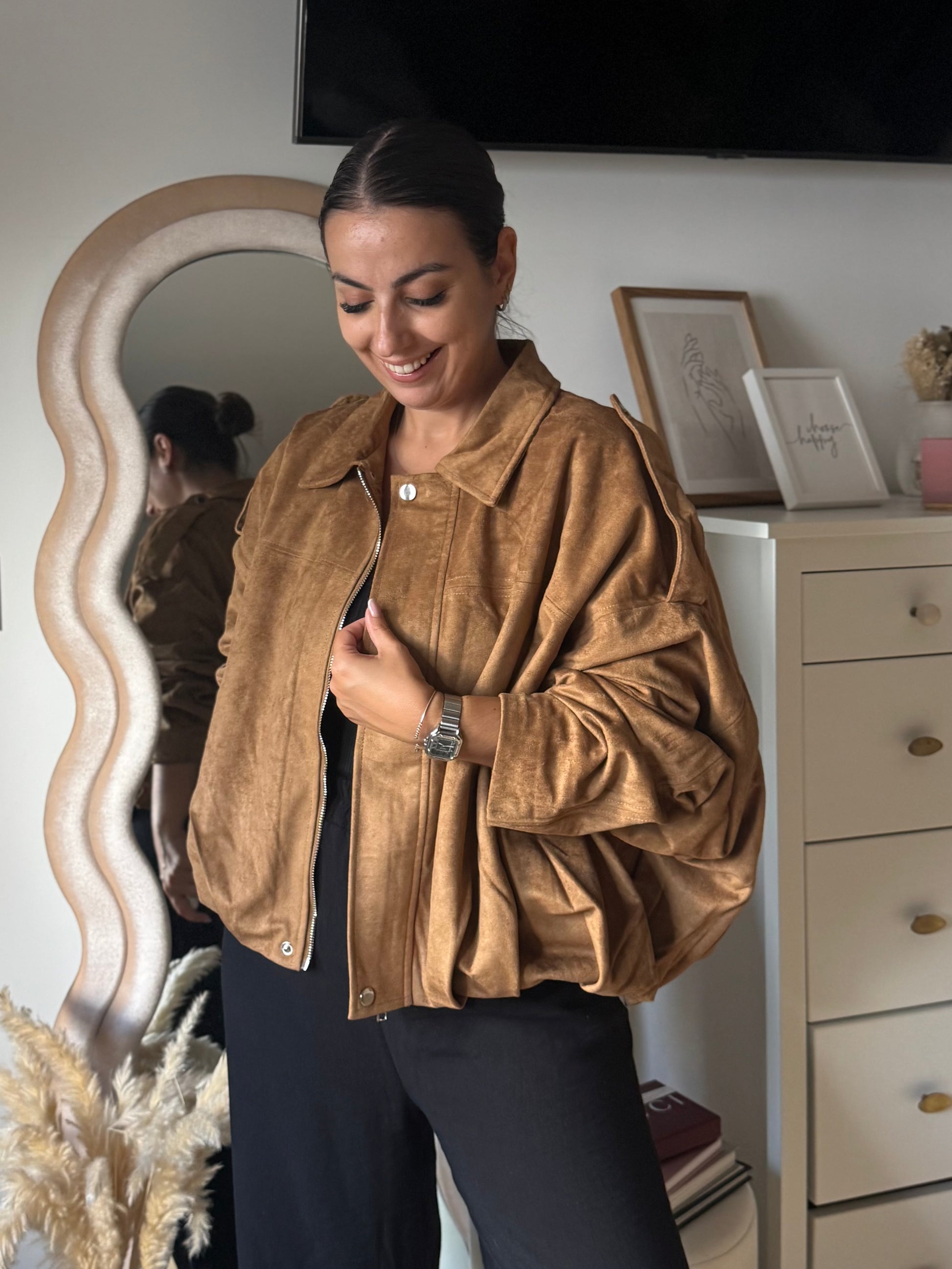 O casaco mais desejado da estação chegou nas três cores tendência: bordeaux, camel e castanho. Com corte oversized e mangas volumosas, este blusão em camurça é a combinação perfeita entre estilo, conforto e atitude.