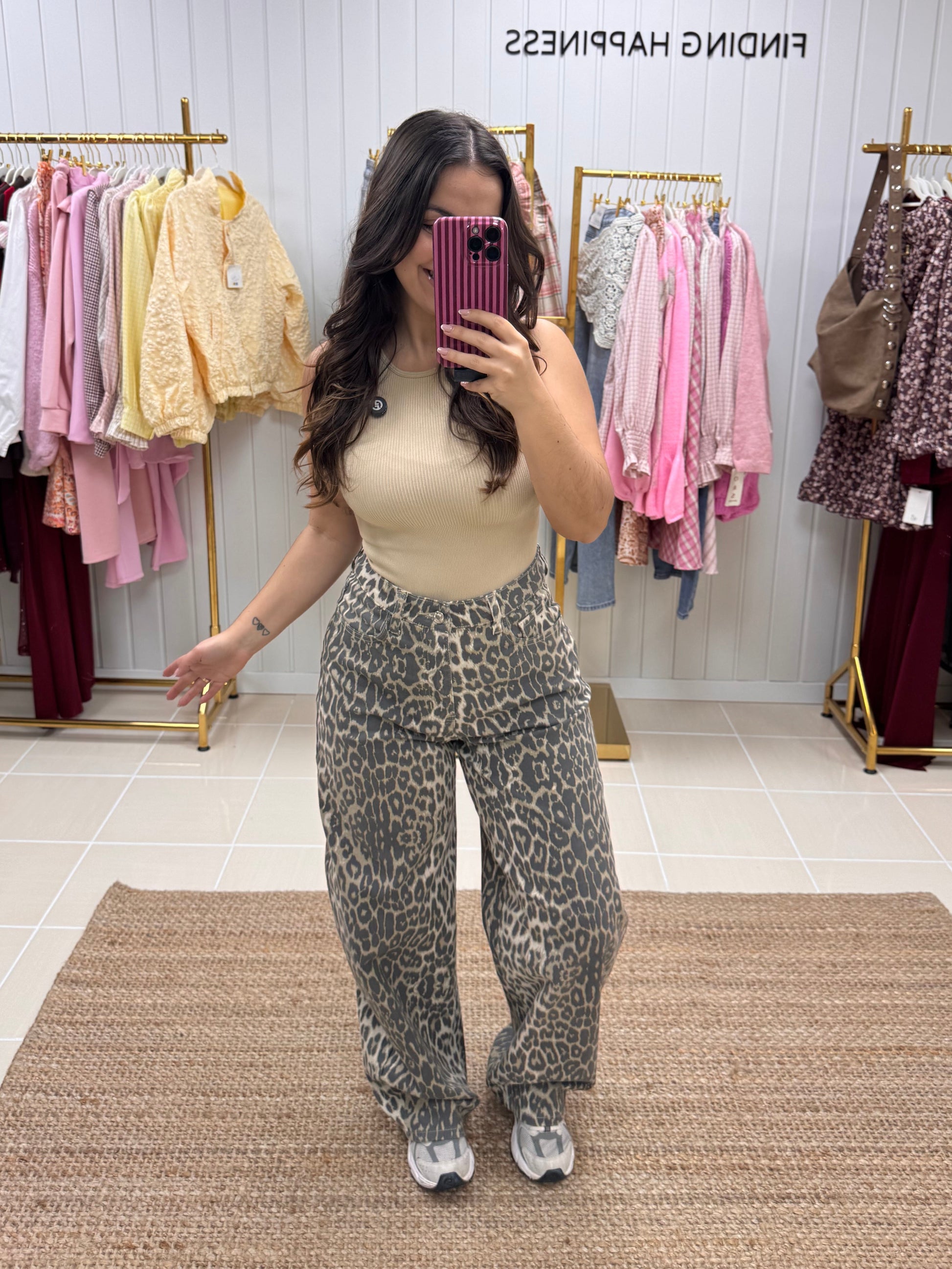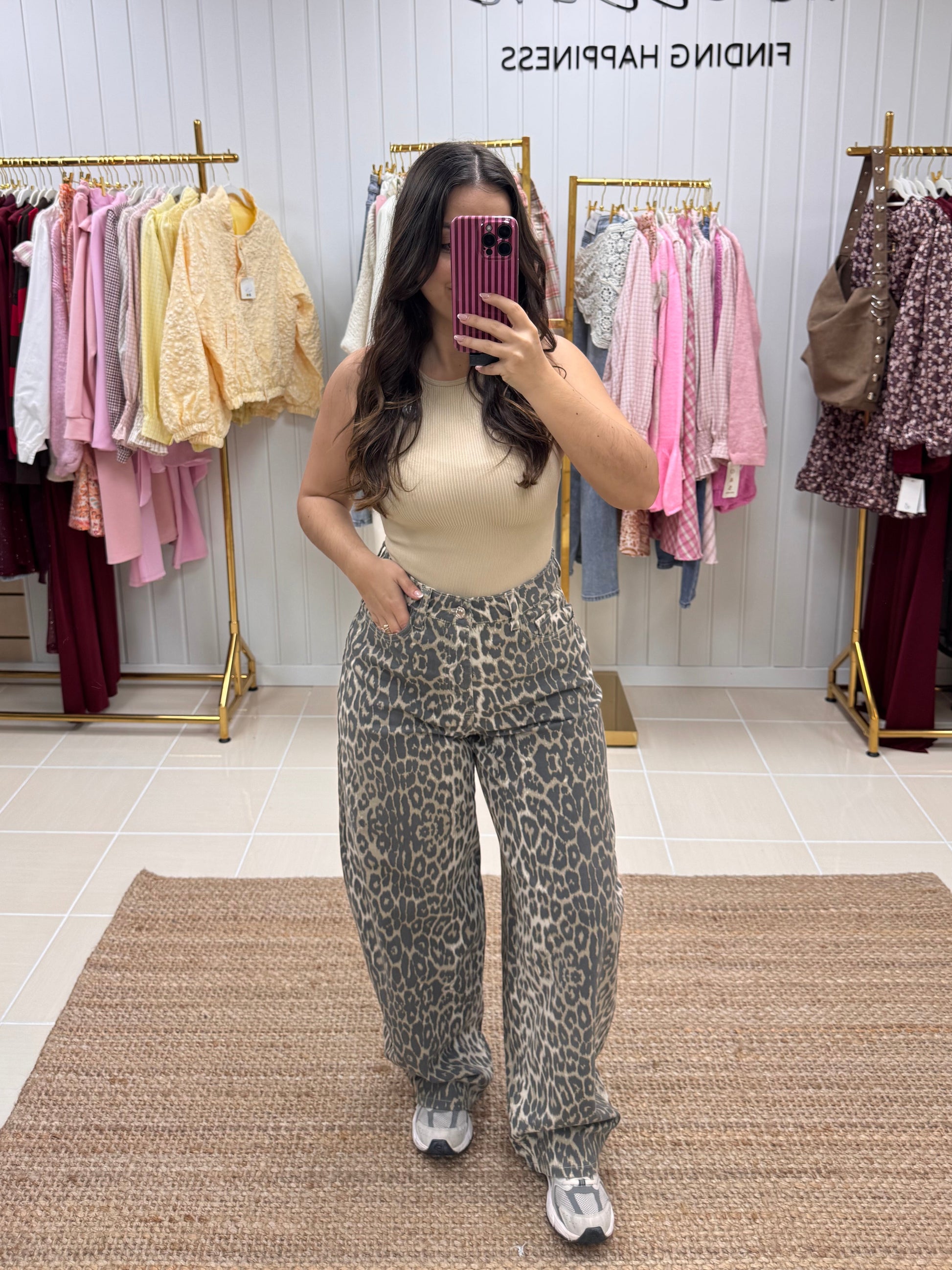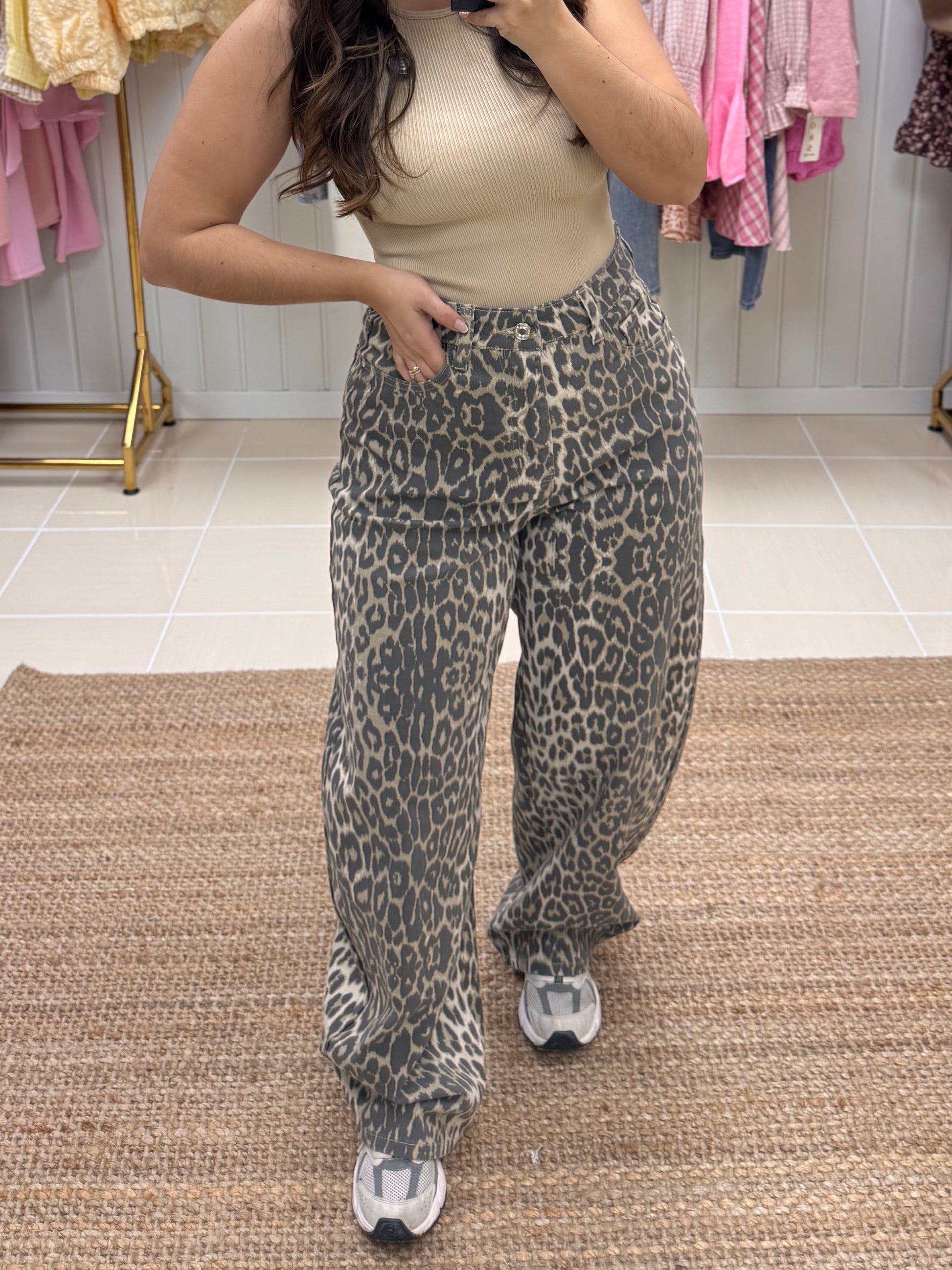 Com padrão animal print em tons neutros, é aquela peça tendência que continua intemporal estação após estação. De corte wide leg e cintura subida, alongam a silhueta e garantem um fit super favorecedor e confortável ao mesmo tempo. O tecido leve e fluído adapta-se ao movimento, tornando-as perfeitas para usar do dia à noite.