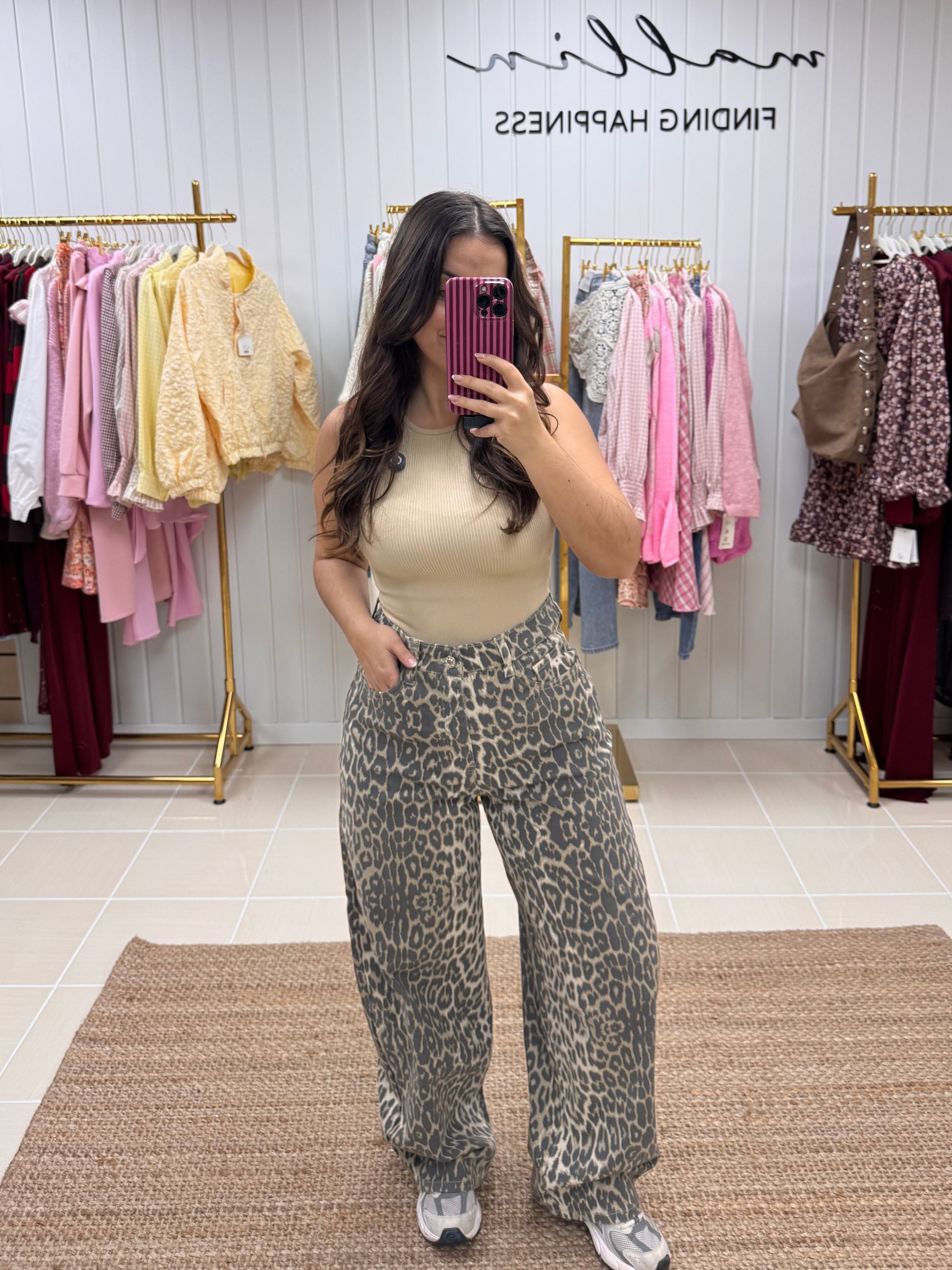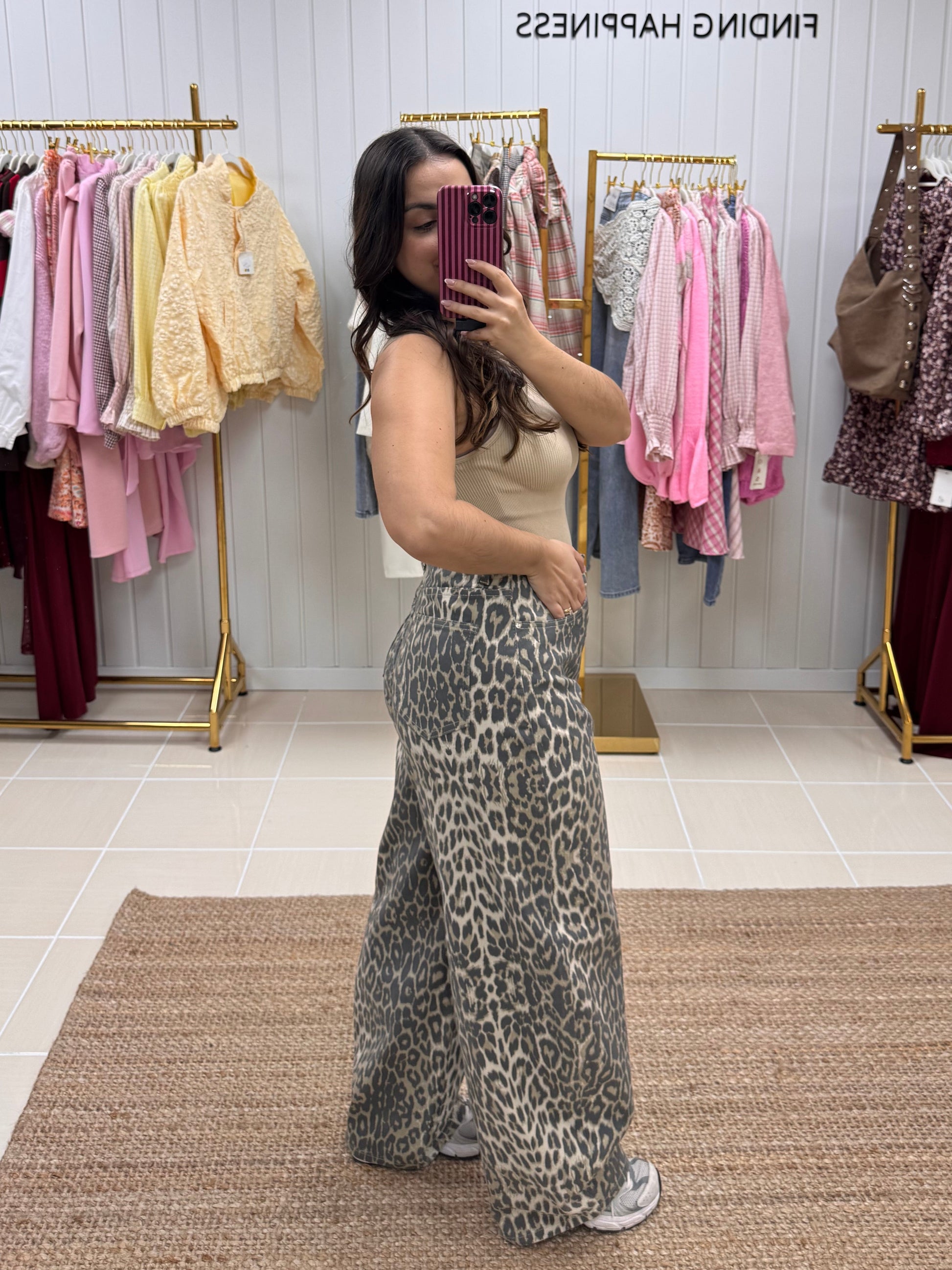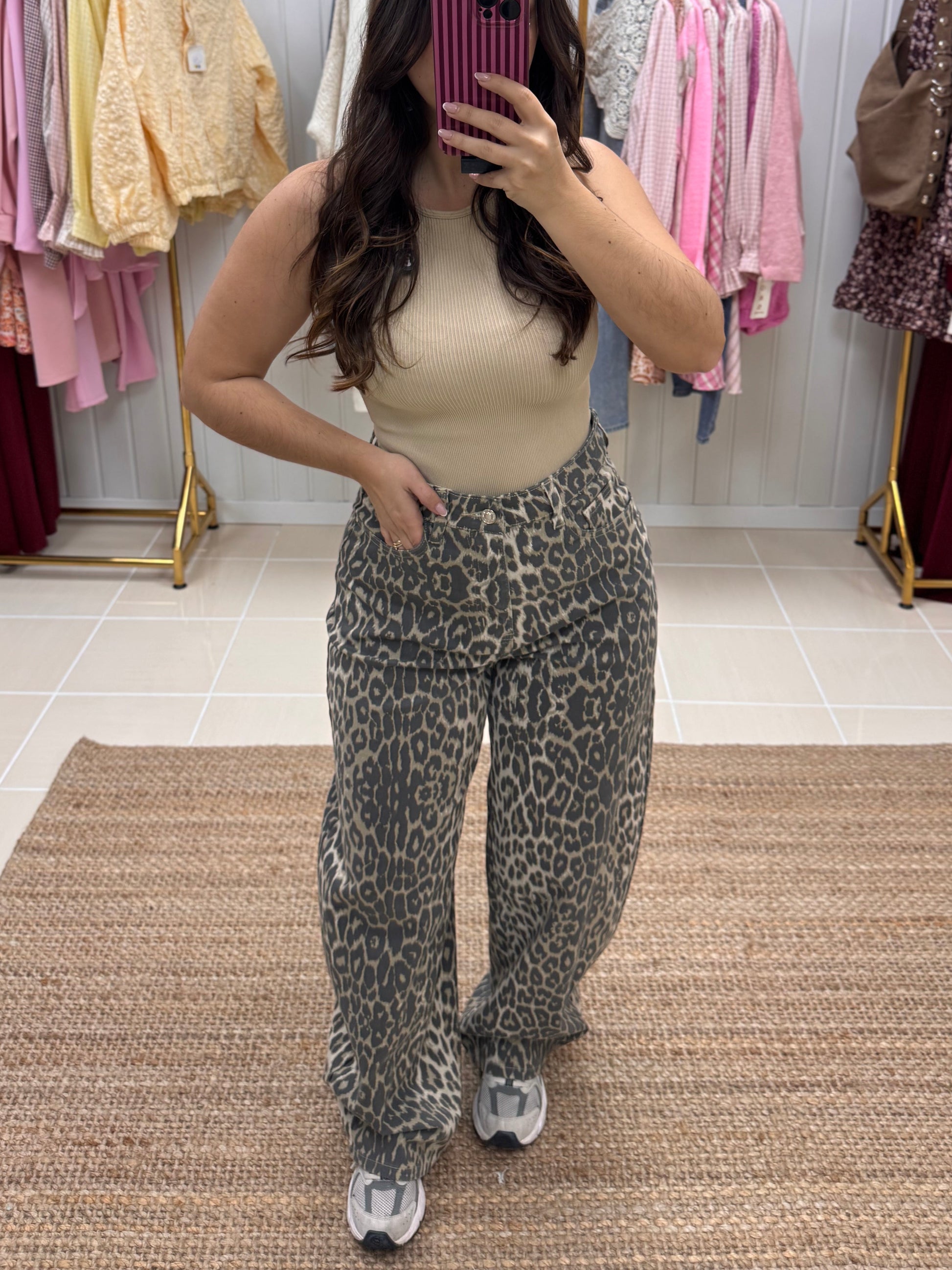 Com padrão animal print em tons neutros, é aquela peça tendência que continua intemporal estação após estação. De corte wide leg e cintura subida, alongam a silhueta e garantem um fit super favorecedor e confortável ao mesmo tempo. O tecido leve e fluído adapta-se ao movimento, tornando-as perfeitas para usar do dia à noite.