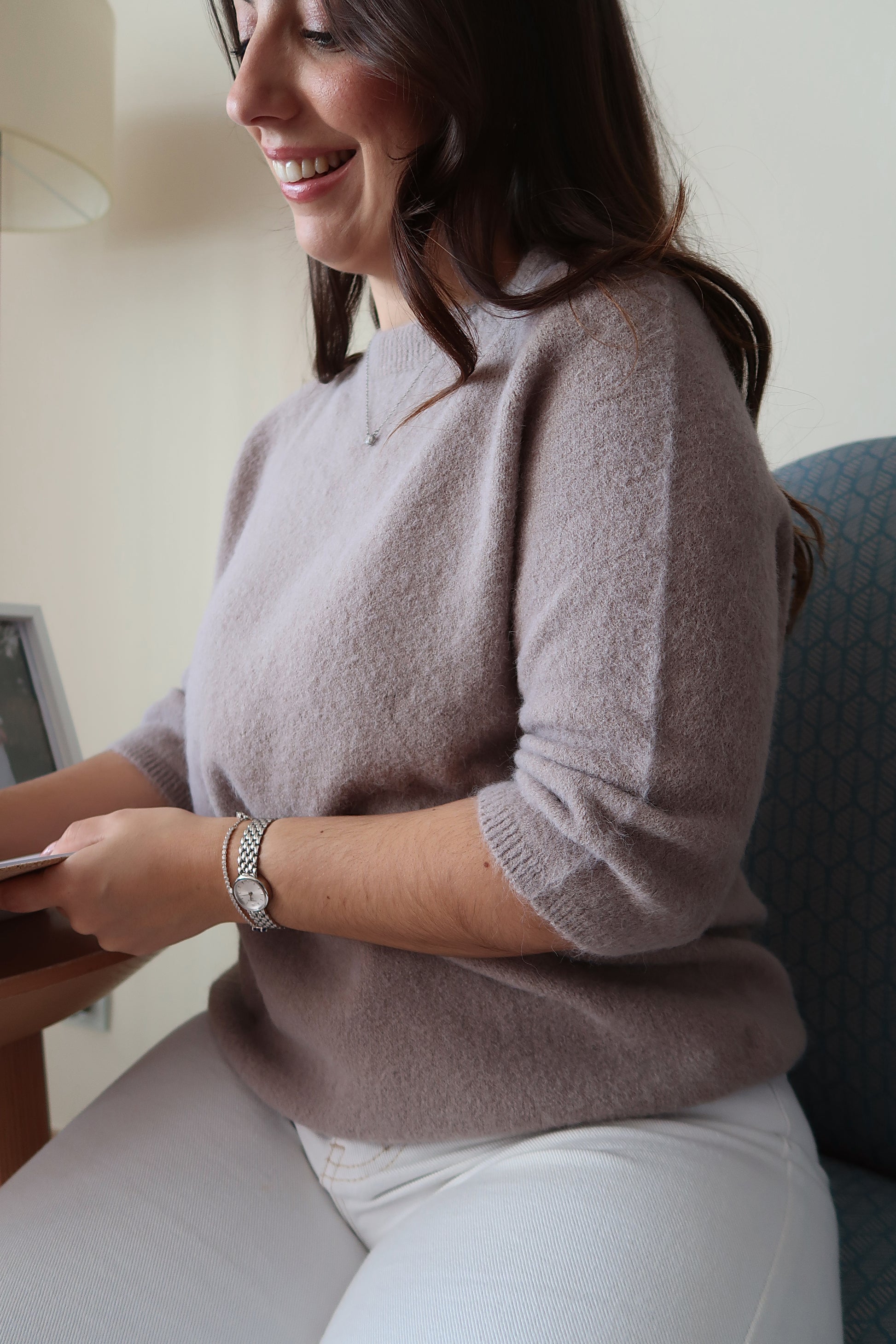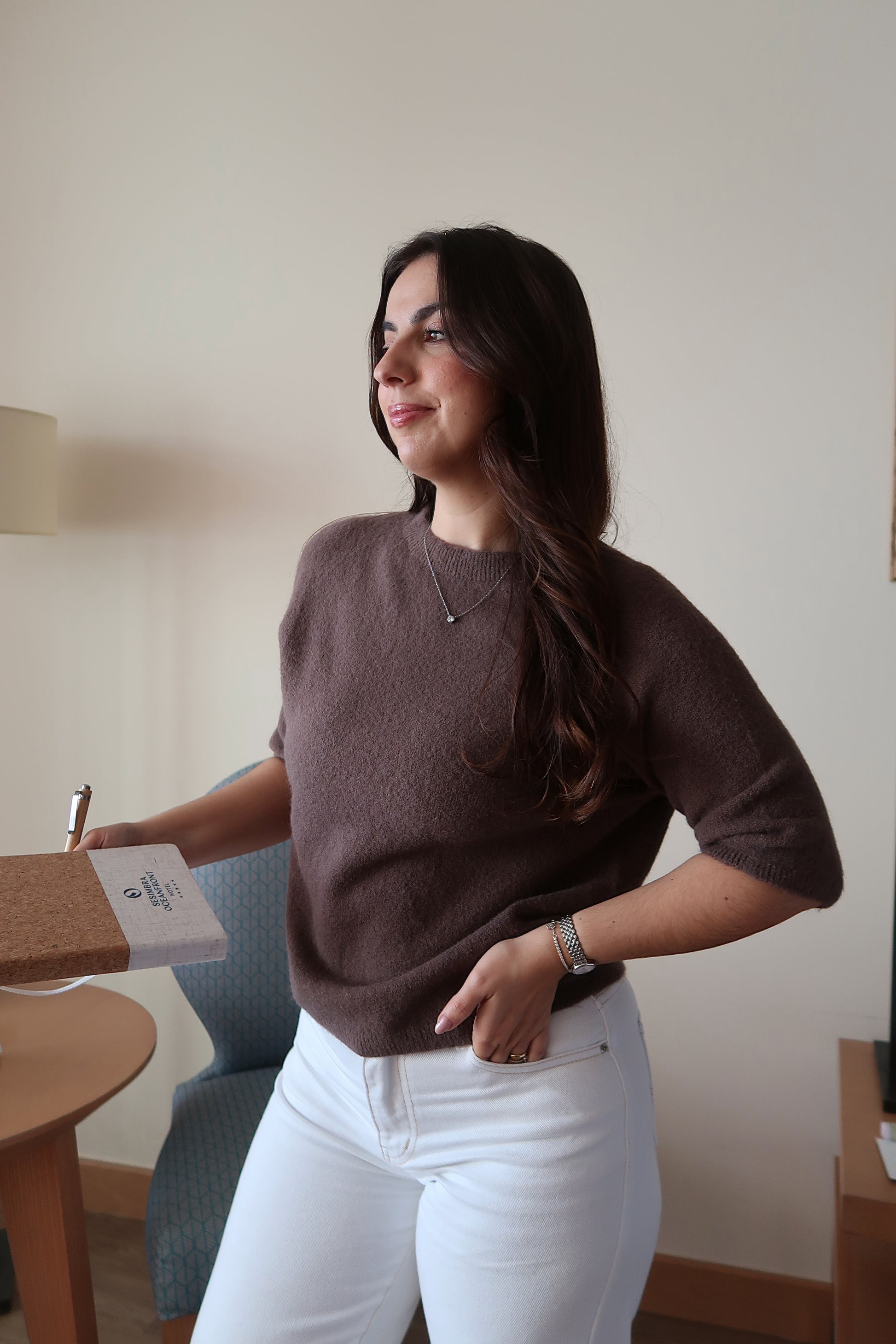 Com um design intemporal e um toque extremamente macio, esta malha é perfeita para quem valoriza conforto aliado à sofisticação. O seu corte simples e o caimento suave assim como a sua manga proporcionam uma silhueta natural e elegante, ideal para um visual cuidado sem esforço.