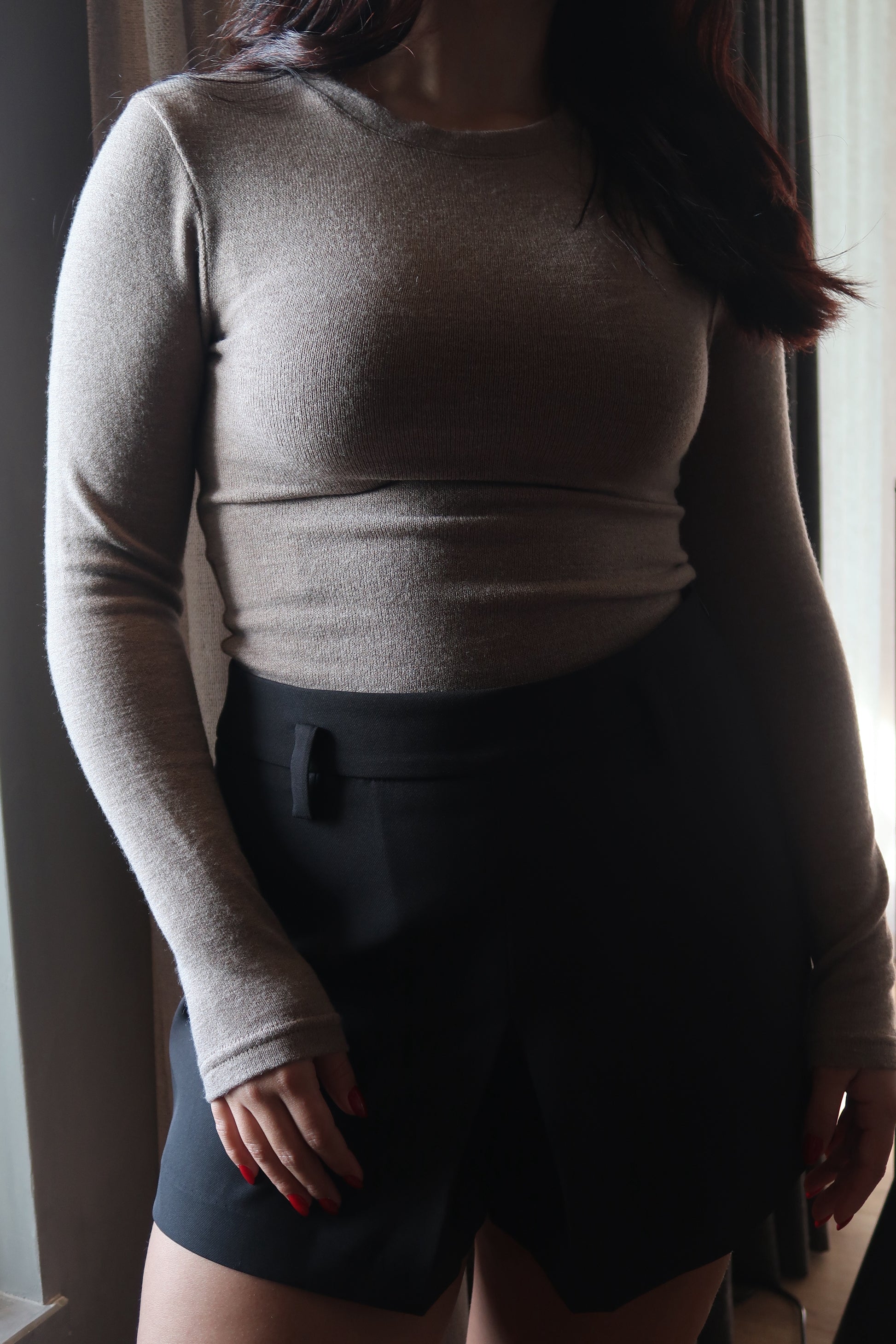 Esta malha de manga comprida é a escolha ideal para quem procura uma peça versátil, confortável e fácil de combinar. Confeccionada num tecido suave e ligeiramente elástico, adapta-se ao corpo de forma natural, proporcionando um ajuste confortável sem perder a elegância. O design simples e intemporal, com decote redondo, torna esta malha perfeita para coordenados casuais ou para sobreposições em looks mais sofisticados. O tom neutro acrescenta um toque minimalista e faz dela uma peça essencial em qualquer guarda-roupa.