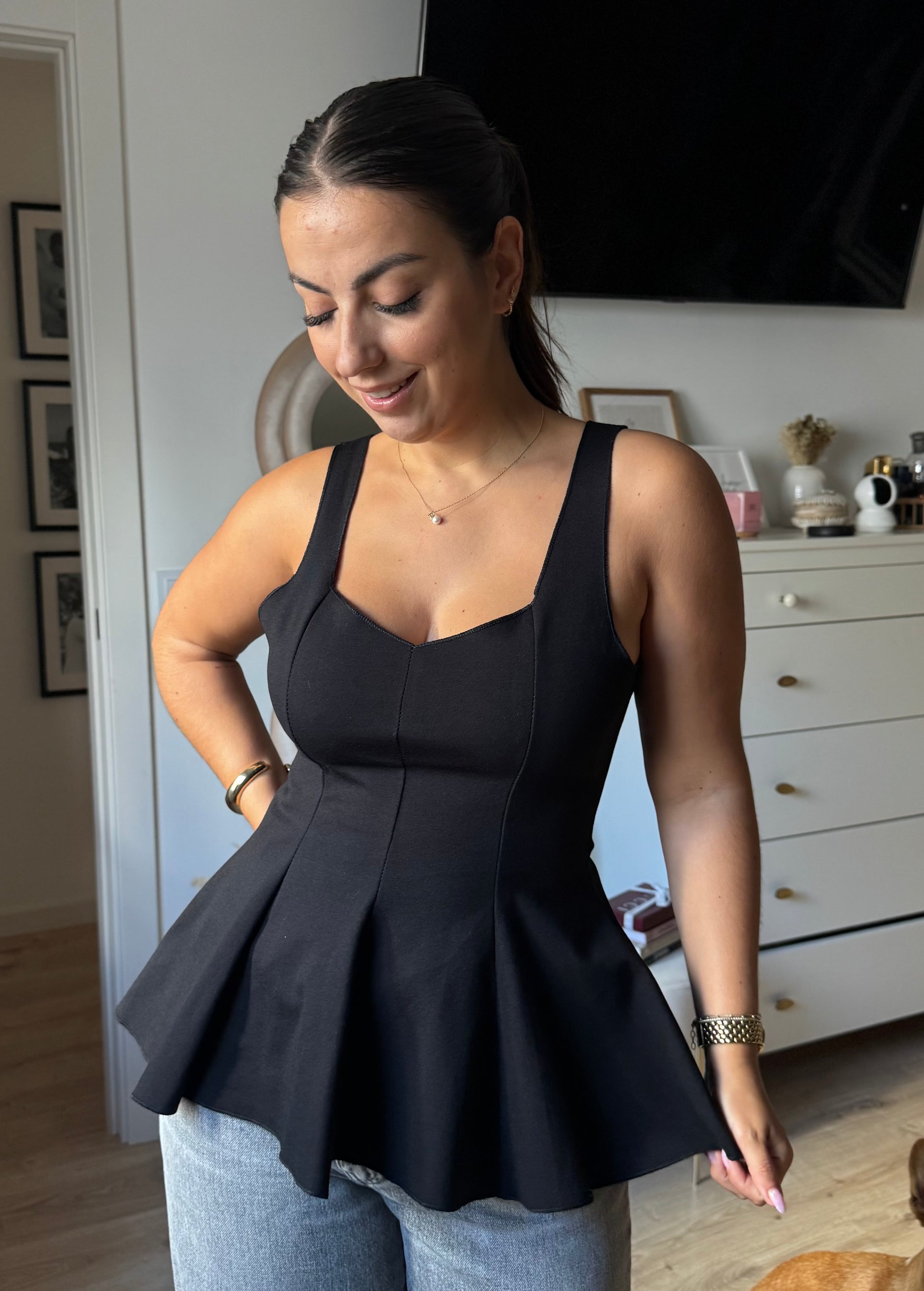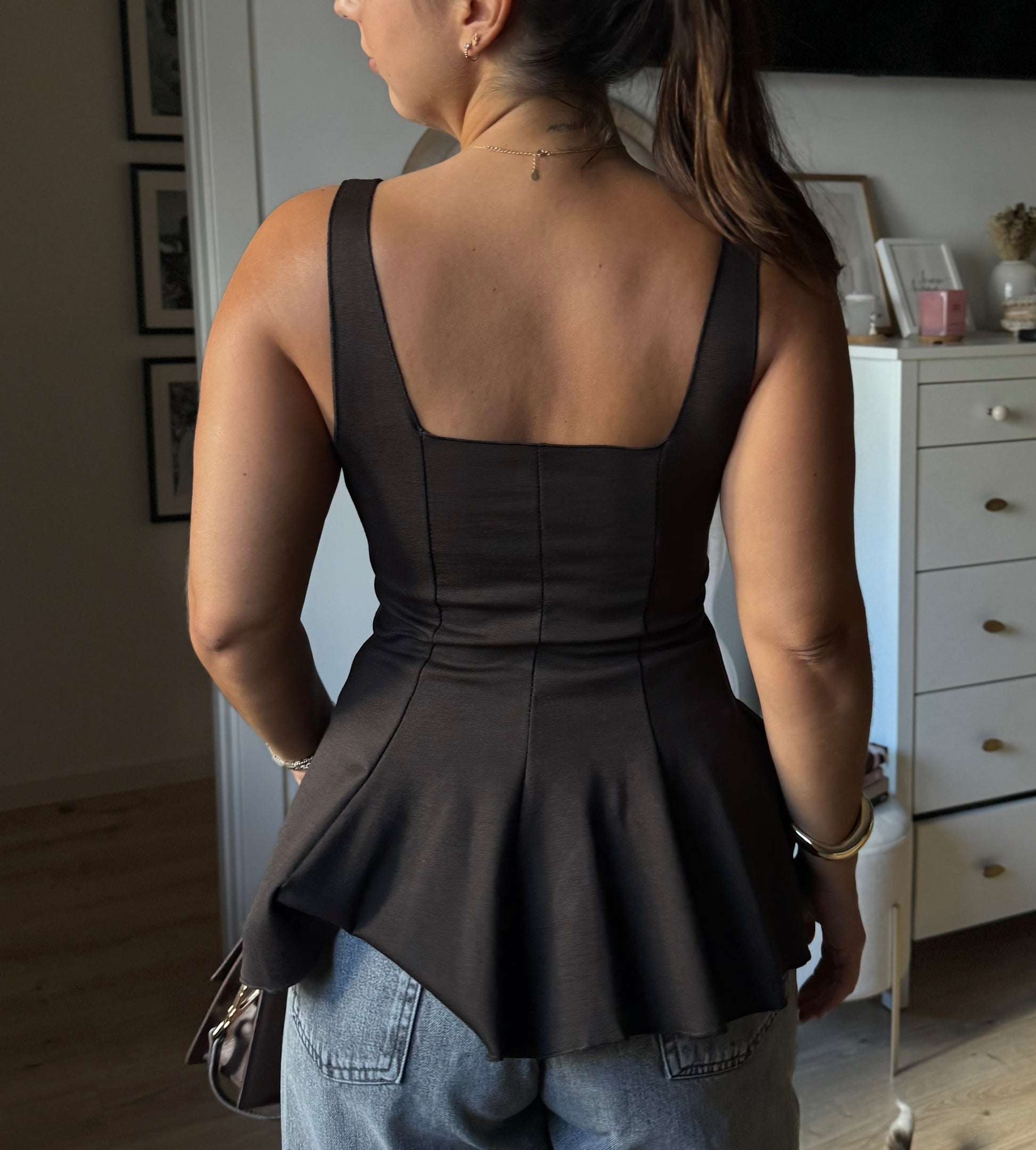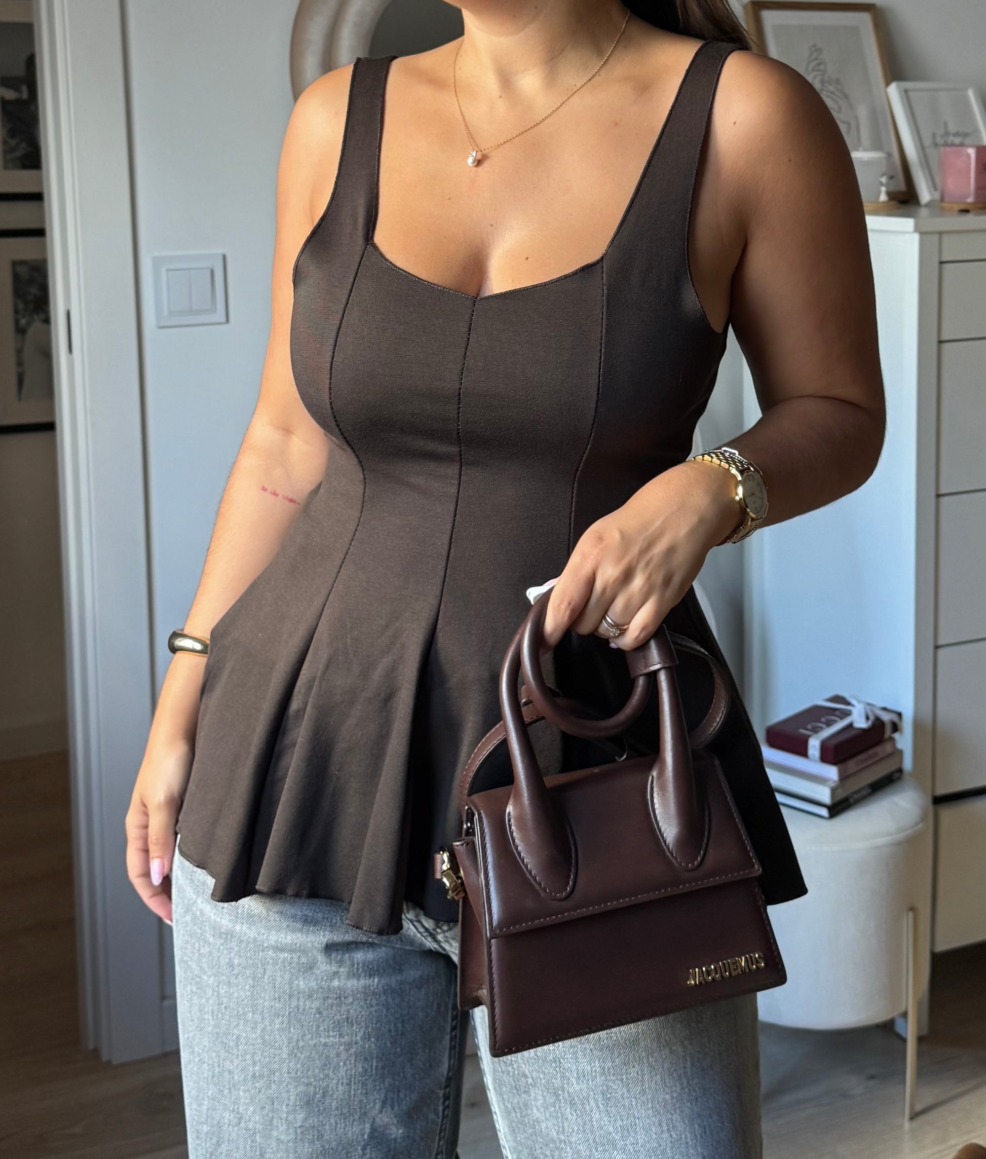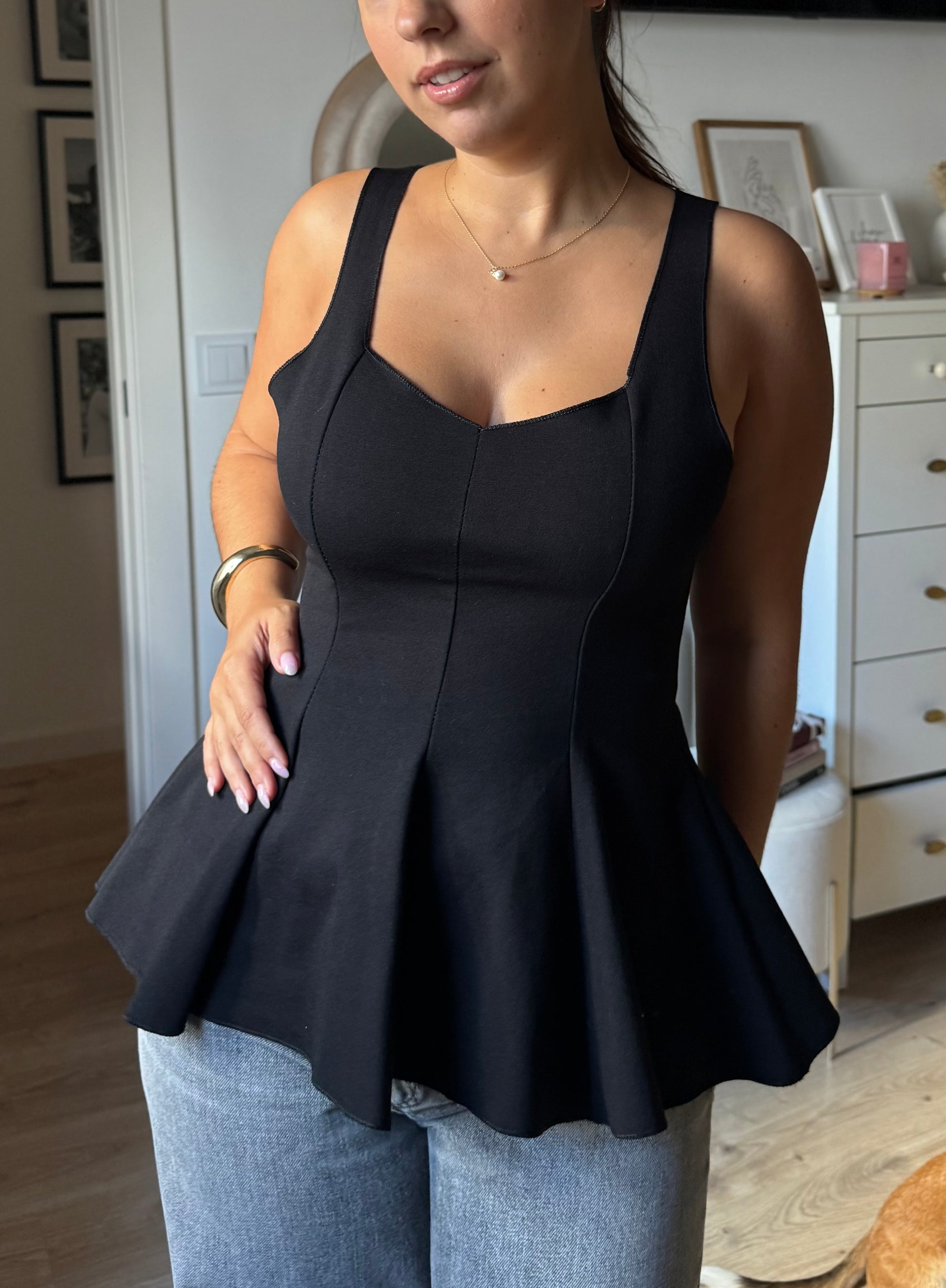 Top peplum em tecido encorpado, com alças largas e decote quadrado que valoriza a silhueta. O corte ajustado no corpo abre suavemente a partir da cintura, criando um efeito elegante e feminino. Versátil, pode ser combinado com calças, saias ou até jeans, adaptando-se a diferentes ocasiões — do dia a dia a um jantar especial. Disponível em várias cores intemporais.