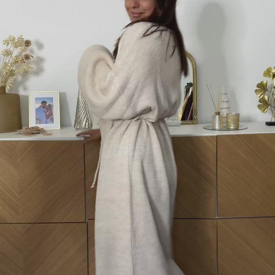 As mangas volumosas conferem um toque contemporâneo, enquanto o comprimento comprido acrescenta uma dose extra de elegância. Confecionado em malha suave e de excelente qualidade, oferece um caimento impecável e conforto durante todo o dia.
