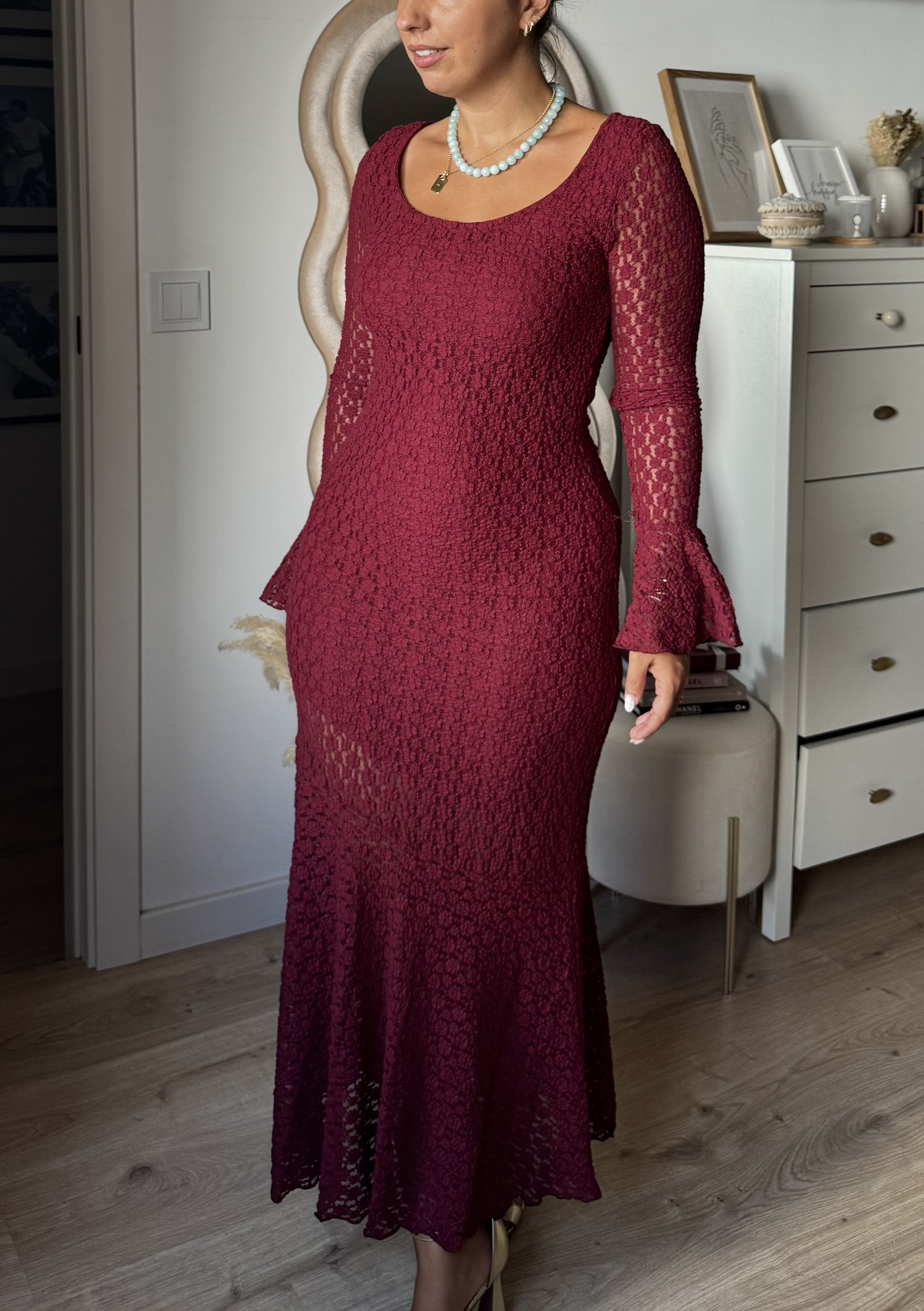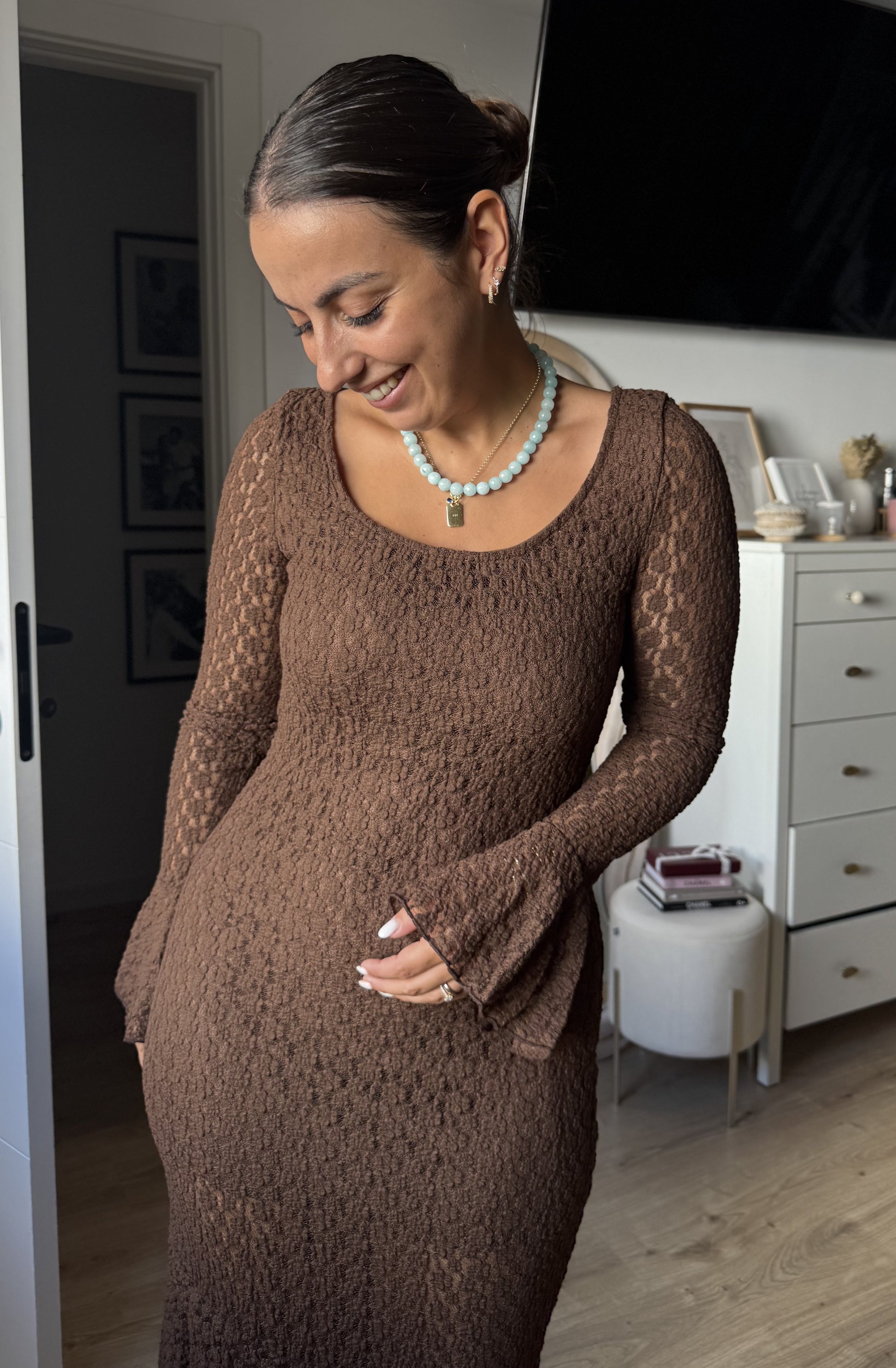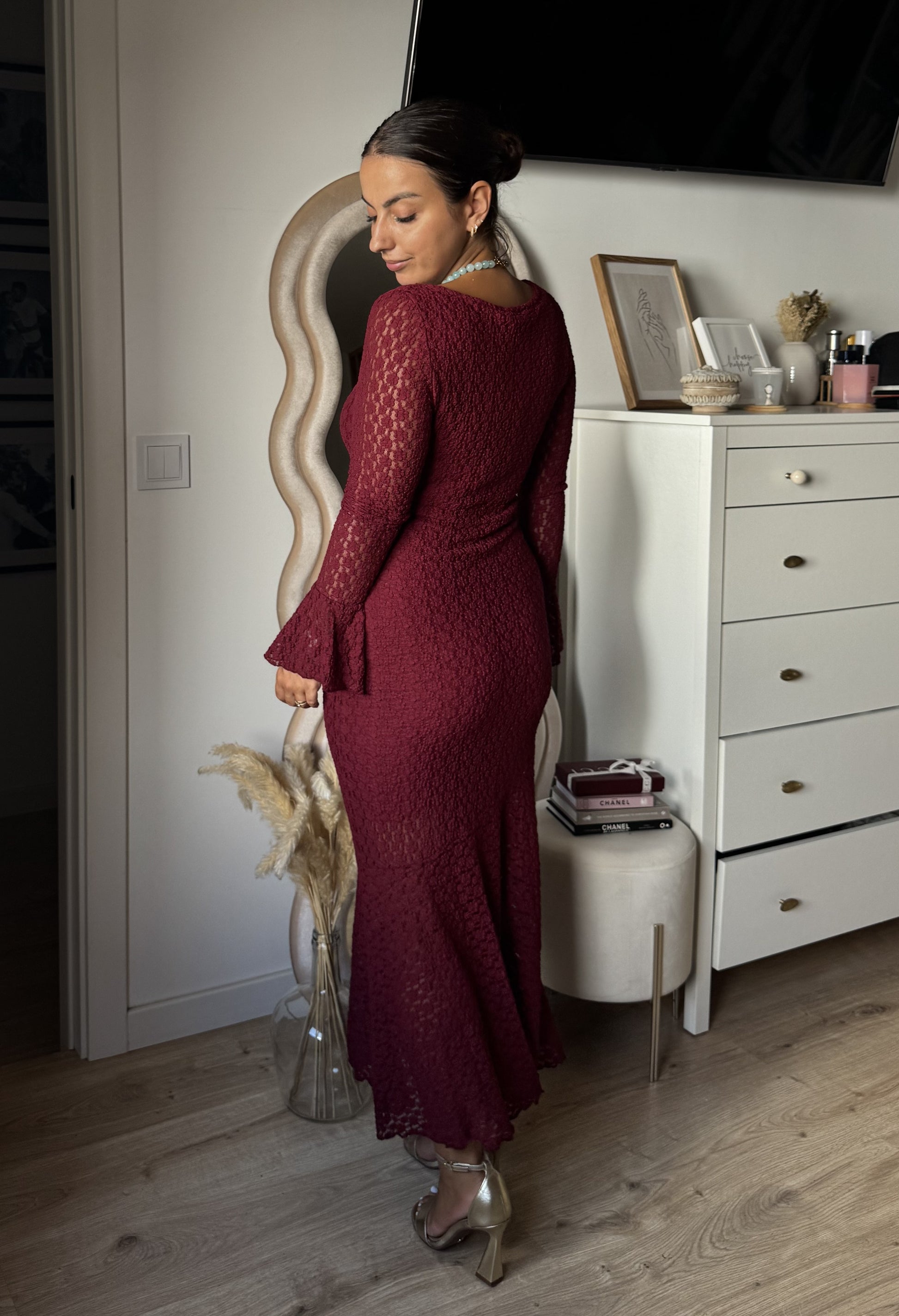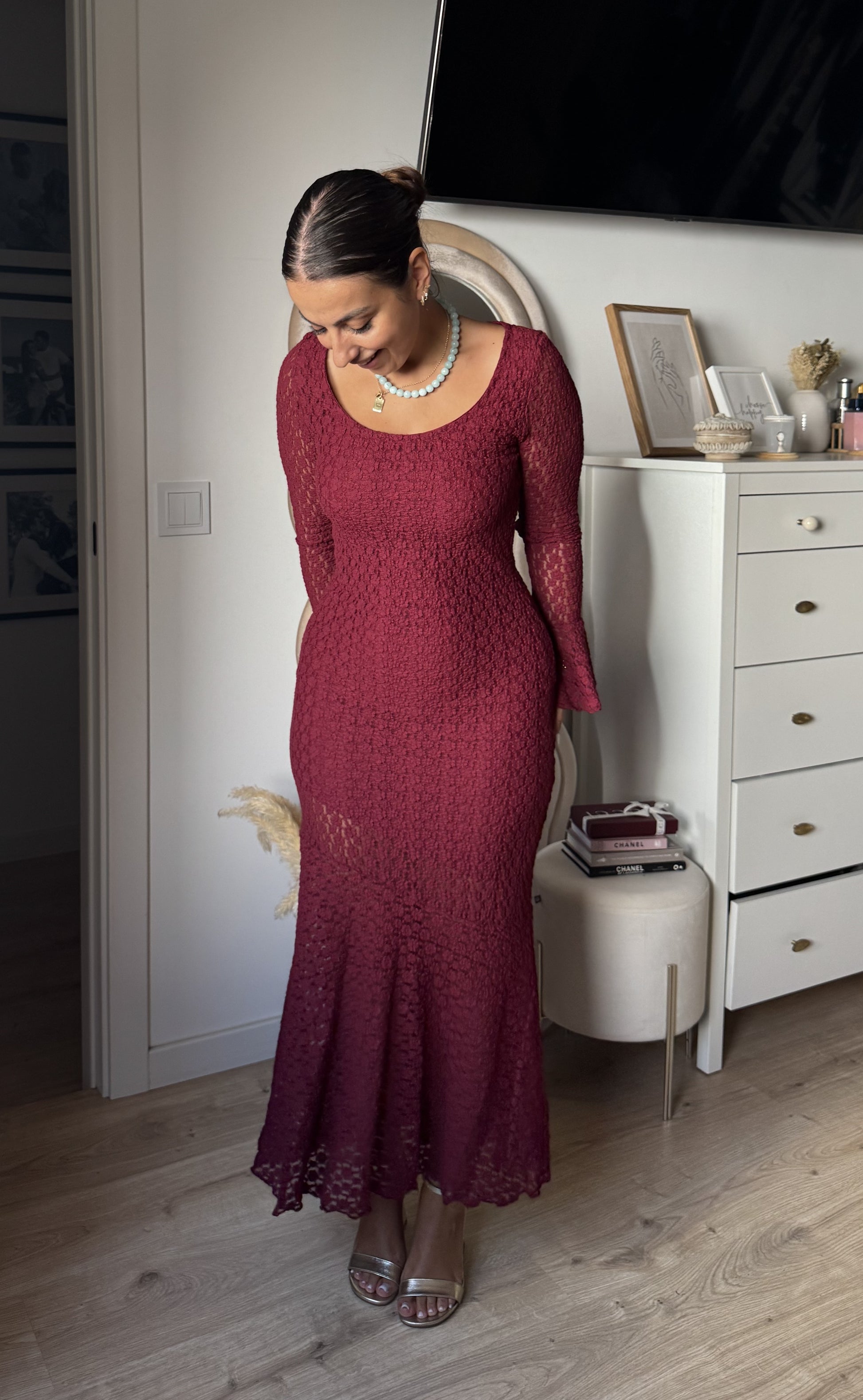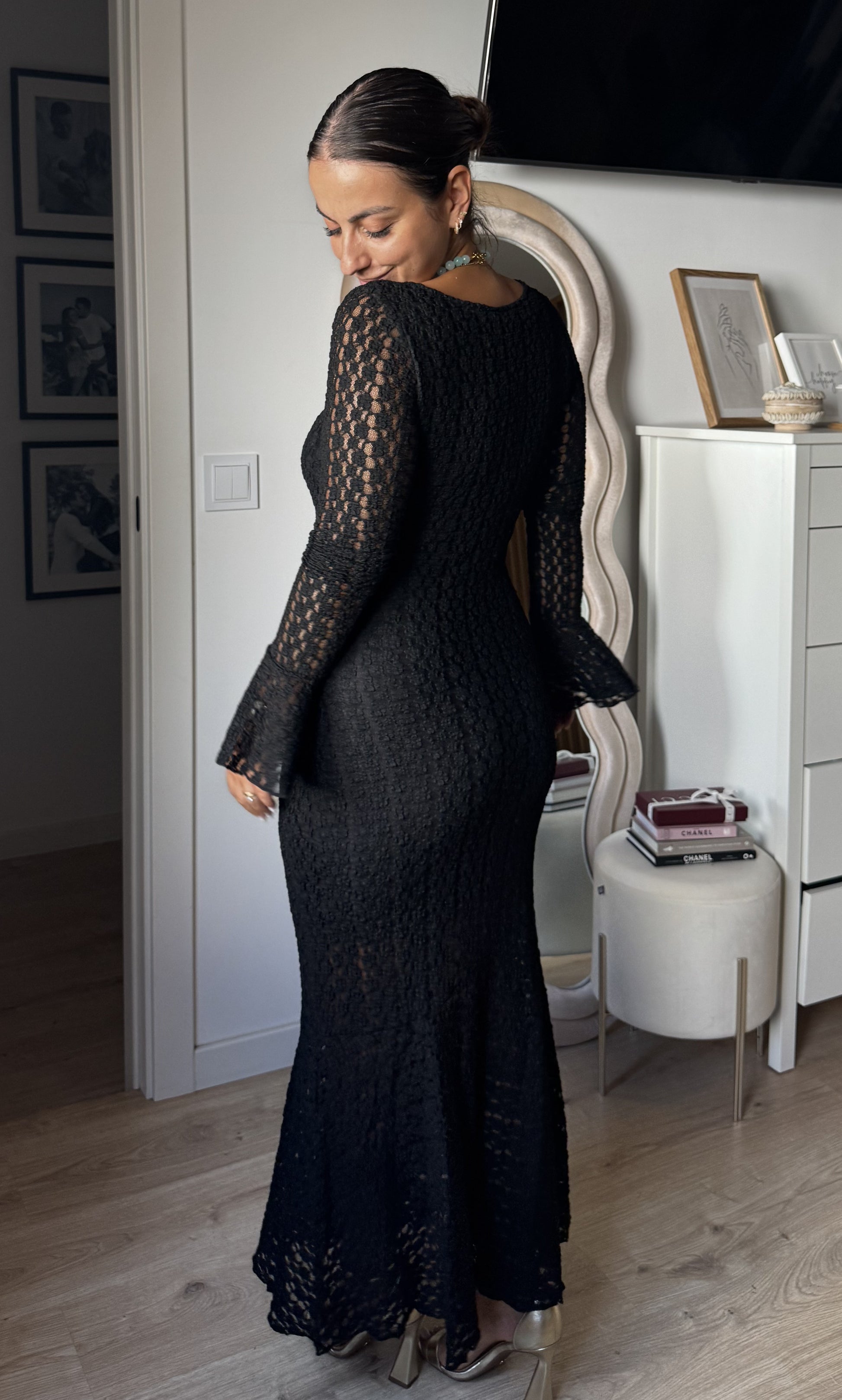 Confeccionado em renda delicada, valoriza a silhueta com um caimento ajustado que realça as curvas de forma elegante.