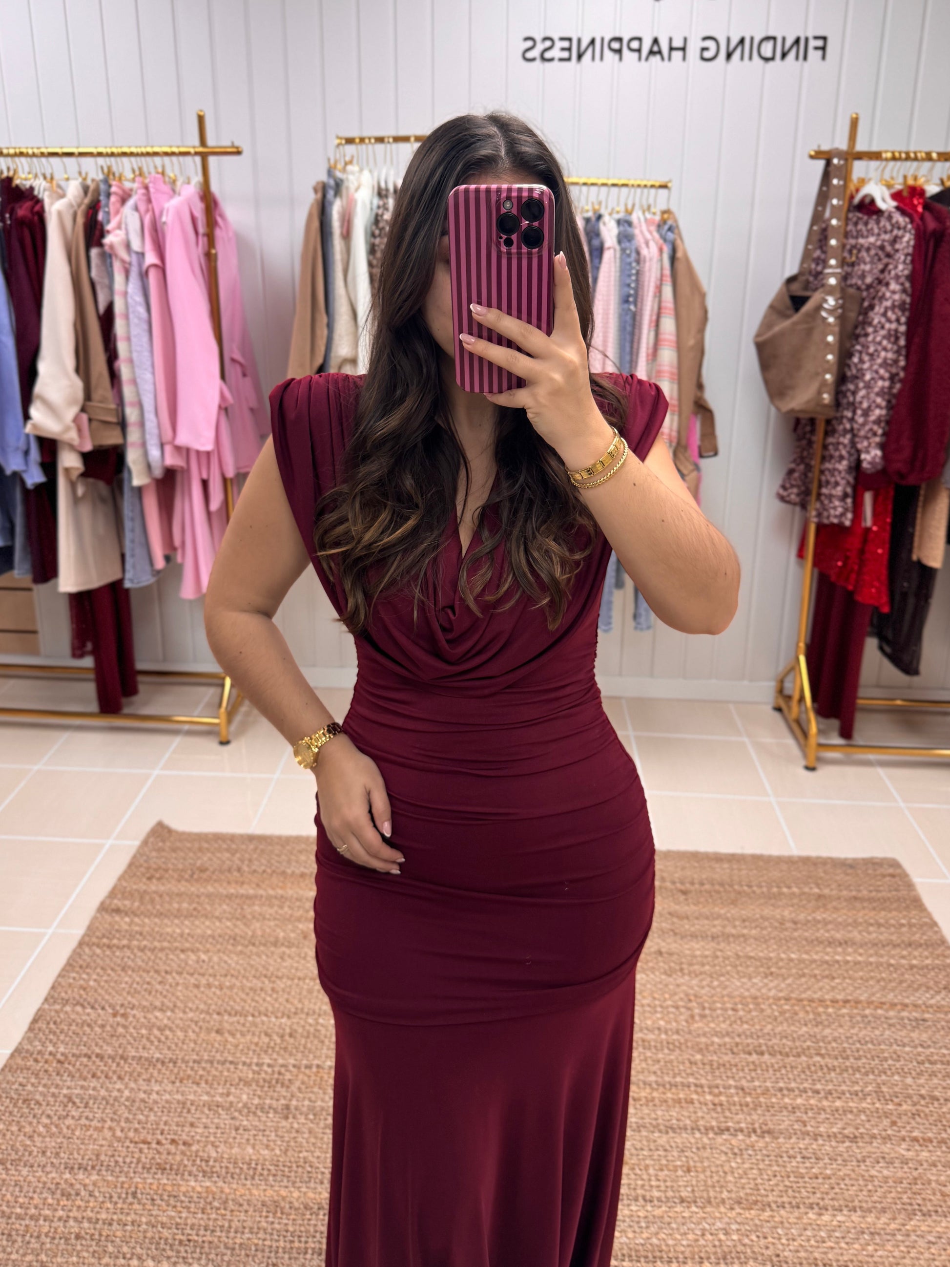 Confeccionado em tecido fluido e elástico, adapta-se perfeitamente ao corpo e oferece um cair impecável até ao chão. Ideal para eventos, cerimónias ou festas onde queres um look marcante e elegante sem esforço.